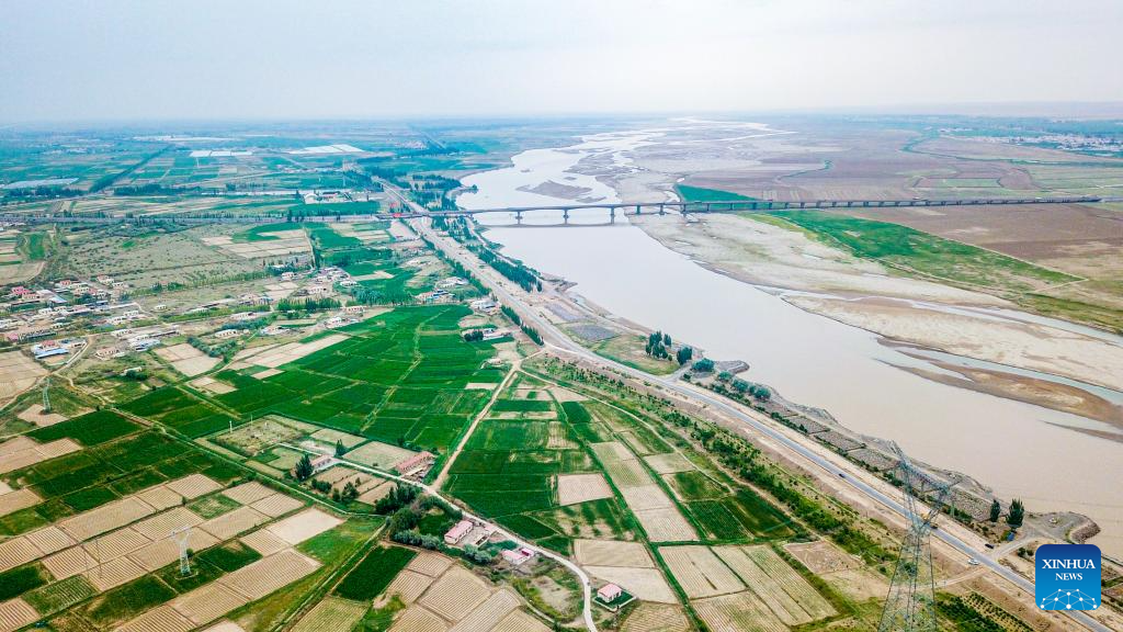 This aerial photo taken on June 18, 2023 shows the Hetao irrigation area in Dengkou County in Bayannur, north China's Inner Mongolia Autonomous Region. (Xinhua/Peng Yuan)