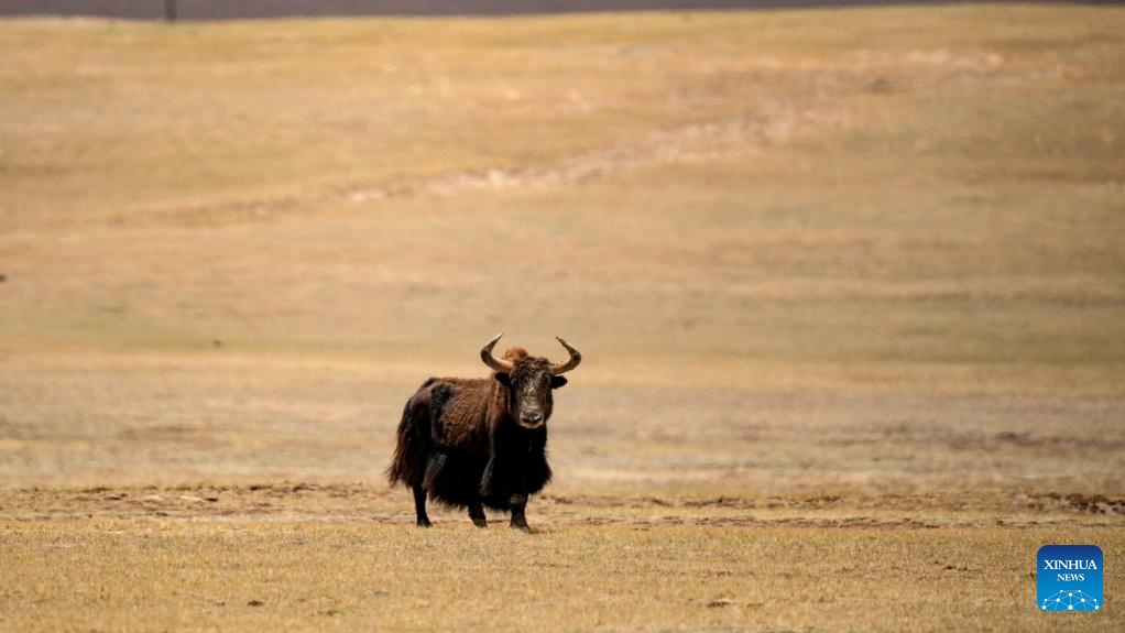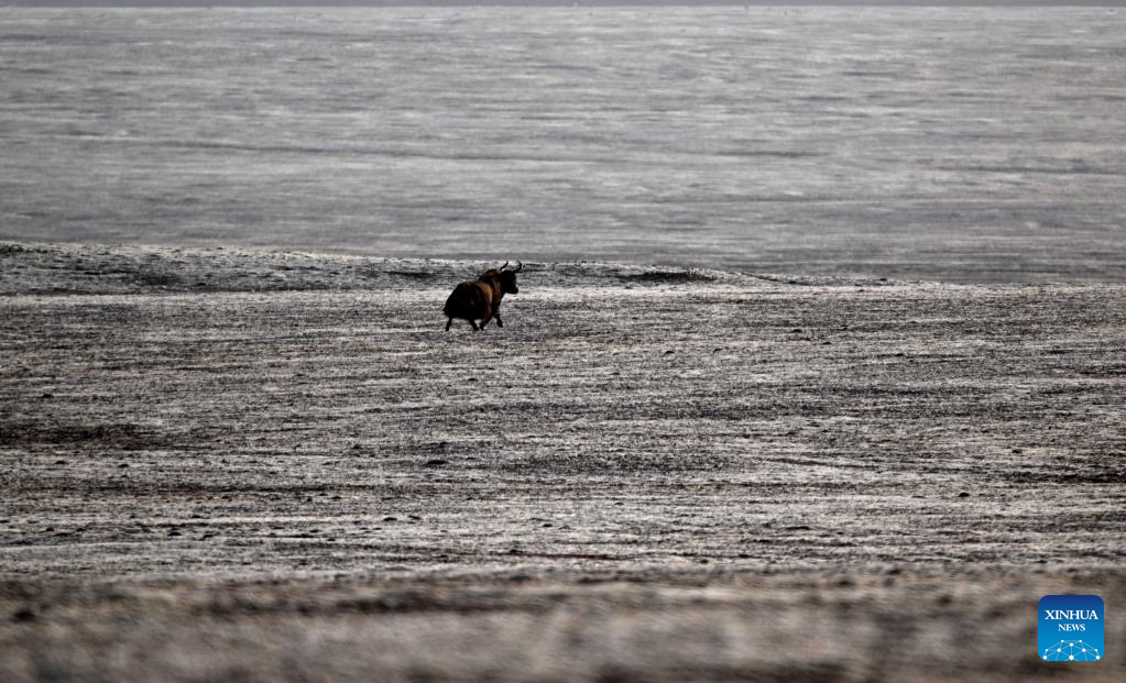 A wild yak is seen near the Zonag Lake in Hoh Xil, northwest China's Qinghai Province, June 18, 2023. The Zonag Lake region in the Hoh Xil National Nature Reserve boasts splendid views of snow mountains, lakes and grasslands. The region also serves as a vital birthing ground for pregnant Tibetan antelopes who arrive between May and July to deliver their offspring. (Xinhua/Han Fangfang)