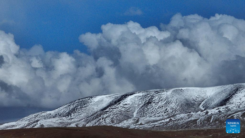 This photo taken on June 18, 2023 shows the snow mountain near the Zonag Lake in Hoh Xil, northwest China's Qinghai Province. The Zonag Lake region in the Hoh Xil National Nature Reserve boasts splendid views of snow mountains, lakes and grasslands. The region also serves as a vital birthing ground for pregnant Tibetan antelopes who arrive between May and July to deliver their offspring. (Xinhua/Pan Binbin)