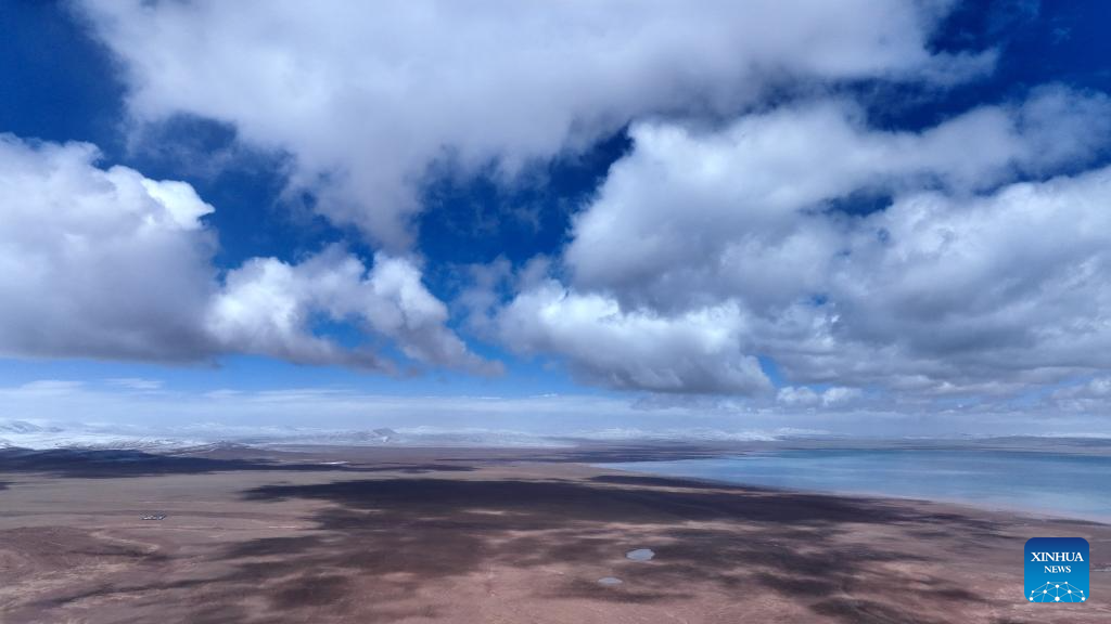This aerial photo taken on June 17, 2023 shows the Zonag Lake in Hoh Xil, northwest China's Qinghai Province. The Zonag Lake region in the Hoh Xil National Nature Reserve boasts splendid views of snow mountains, lakes and grasslands. The region also serves as a vital birthing ground for pregnant Tibetan antelopes who arrive between May and July to deliver their offspring. (Xinhua/Zhang Hongxiang)
