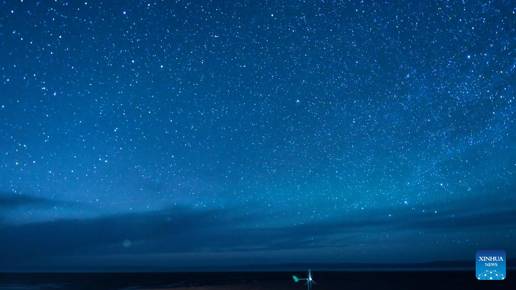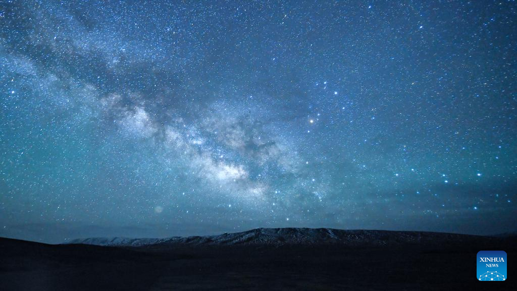 This photo taken on June 17, 2023 shows the starry sky near the Zonag Lake in Hoh Xil, northwest China's Qinghai Province. The Zonag Lake region in the Hoh Xil National Nature Reserve boasts splendid views of snow mountains, lakes and grasslands. The region also serves as a vital birthing ground for pregnant Tibetan antelopes who arrive between May and July to deliver their offspring. (Xinhua/Pan Binbin)