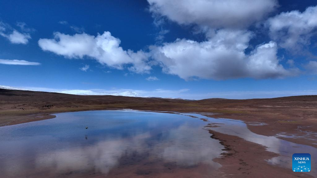 This aerial photo taken on June 17, 2023 shows scenery near the Zonag Lake in Hoh Xil, northwest China's Qinghai Province. The Zonag Lake region in the Hoh Xil National Nature Reserve boasts splendid views of snow mountains, lakes and grasslands. The region also serves as a vital birthing ground for pregnant Tibetan antelopes who arrive between May and July to deliver their offspring. (Xinhua/Pan Binbin)