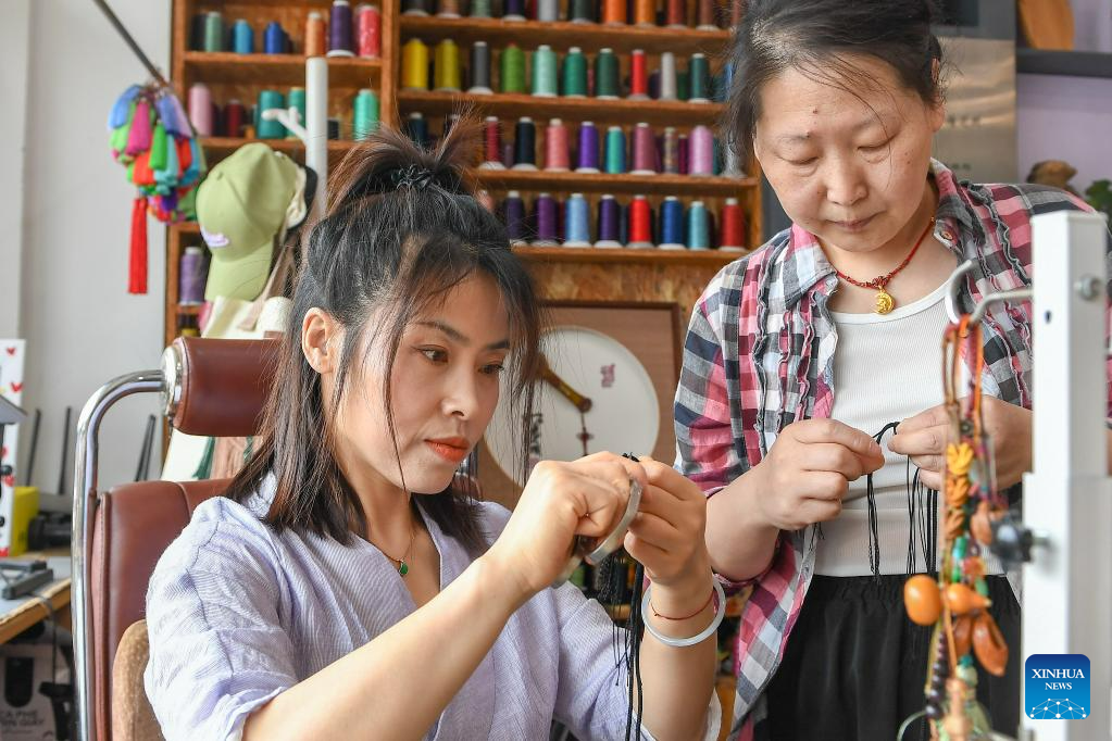 In 2016, Xu launched her own brand. The traditional string weaving technique became a provincial-level intangible cultural heritage of Jilin in 2021. While operating a studio, Xu also accepts apprentices and offers free training courses. She hopes to carry forward the string-weaving technique, making more and more young people to learn and love it. (Xinhua/Zhang Nan)