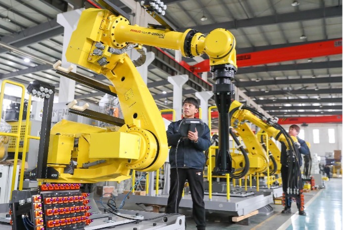 Employees of Shanghai Zhenjie Automation Equipment Manufacturing Co., Ltd. in Shanghai's Songjiang district work in a workshop. (Photo by Jiang Huihui/People's Daily Online)