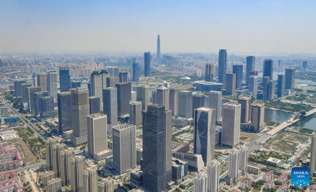 This aerial view taken on June 24, 2023 shows a view of the Binhai New Area in north China's Tianjin Municipality. (Xinhua/Sun Fanyue)