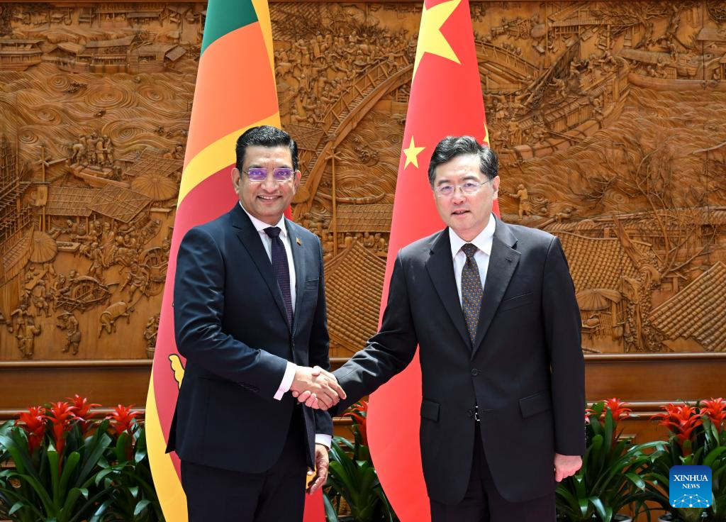 BEIJING, June 25 (Xinhua) -- Chinese State Councilor and Foreign Minister Qin Gang met with Ali Sabry, Sri Lankan Minister of Foreign Affairs, in Beijing on Sunday.