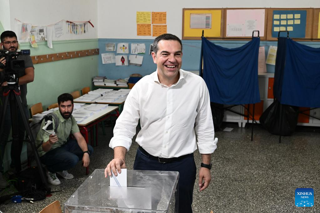 Alexis Tsipras, leader of Greece's main opposition party, SYRIZA-Progressive Alliance, casts his ballot at a polling station in Athens, Greece, June 25, 2023. A second general election was held in Greece on Sunday. (Photo by Marios Lolos/Xinhua)