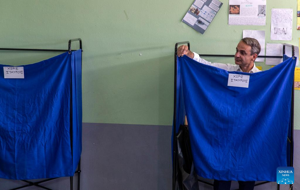 Kyriakos Mitsotakis, leader of Greece's conservative New Democracy (ND) party, casts his ballot at a polling station in Athens, Greece, June 25, 2023. A second general election was held in Greece on Sunday. (Photo by Marios Lolos/Xinhua)