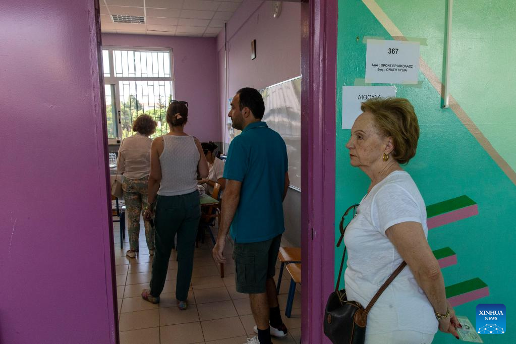 People wait to vote at a polling station in Athens, Greece, June 25, 2023. A second general election was held in Greece on Sunday. (Photo by Marios Lolos/Xinhua)