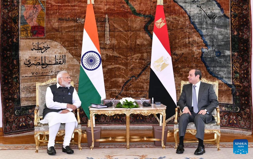 CAIRO, June 25 (Xinhua) -- Egyptian President Abdel-Fattah al-Sisi and visiting Indian Prime Minister Narendra Modi on Sunday signed a joint declaration, upgrading the bilateral relations to a strategic partnership, the Egyptian presidency announced.