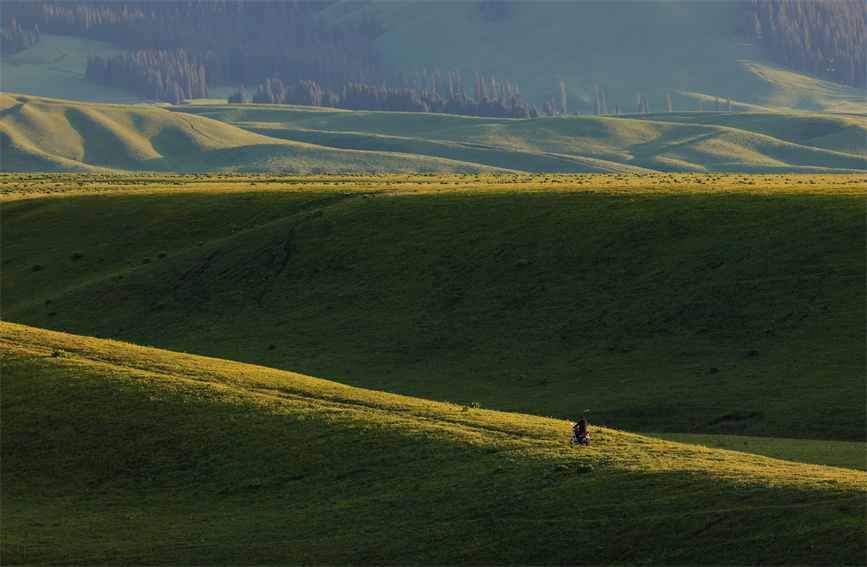 Green grass at the Narat Grasslands. (Photo/Feng Jinpo)