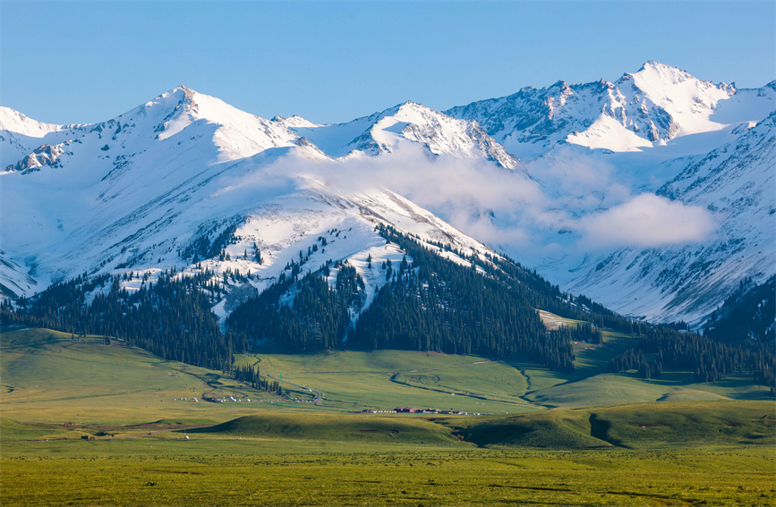 The picturesque scenery of the Narat Grasslands in Xinyuan county, northwest China's Xinjiang Uygur Autonomous Region. (Photo/Feng Jinpo)
