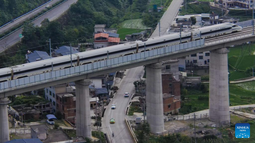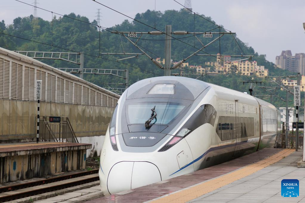 Test train 55311 departs from Guiyang North Station in Guiyang, southwest China's Guizhou Province, June 26, 2023. (Xinhua/Liu Xu)