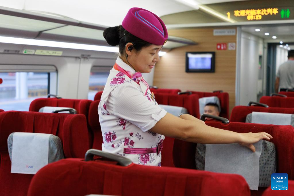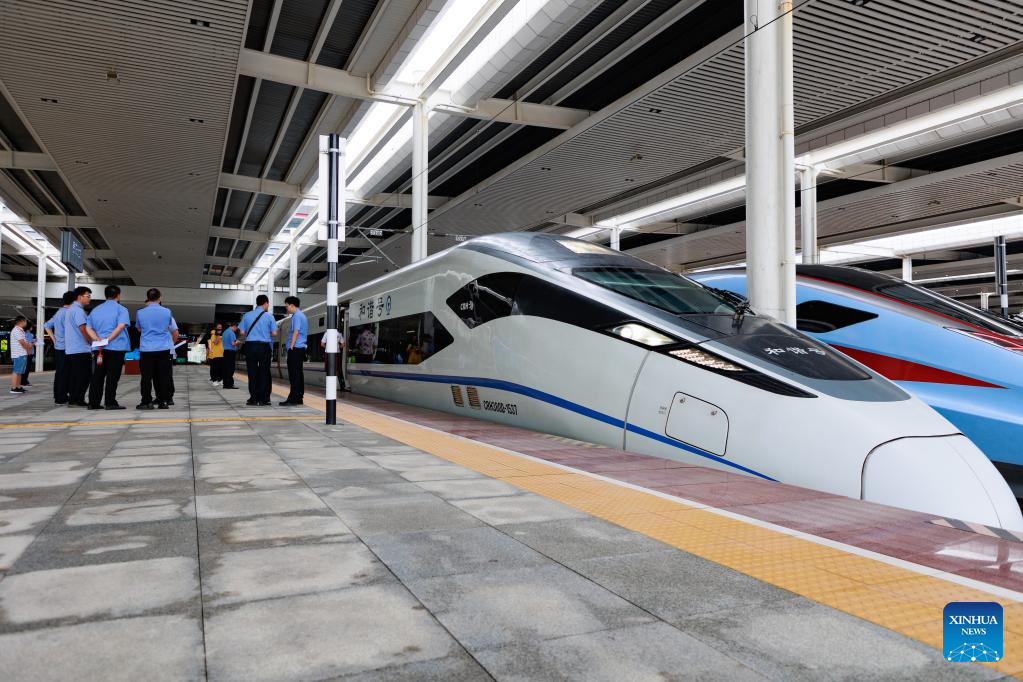 Test train 55311 is seen before departure at Guiyang North Station in Guiyang, southwest China's Guizhou Province, June 26, 2023. (Xinhua/Liu Xu)