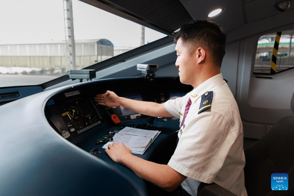 A driver prepares for the departure of a test train at Guiyang North Station in Guiyang, southwest China's Guizhou Province, June 26, 2023. (Xinhua/Liu Xu)