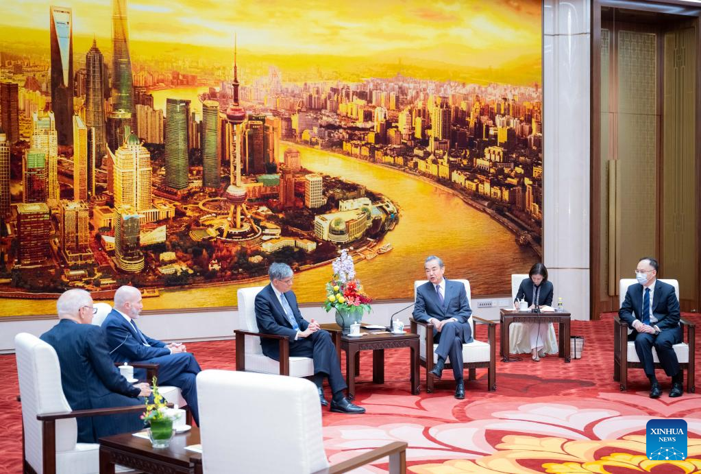 BEIJING, June 26 (Xinhua) -- Wang Yi, director of the Office of the Foreign Affairs Commission of the Communist Party of China (CPC) Central Committee, met with the chairman of the National Committee on U.S.-China Relations (NCUSCR) Jacob Lew, vice chair of the NCUSCR Evan Greenberg, and president of the NCUSCR Stephen Orlins in Beijing on Monday.