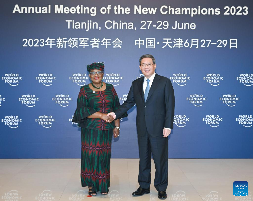 TIANJIN, June 26 (Xinhua) -- Chinese Premier Li Qiang met with Director-General of the World Trade Organization (WTO) Ngozi Okonjo-Iweala on Monday in Tianjin.