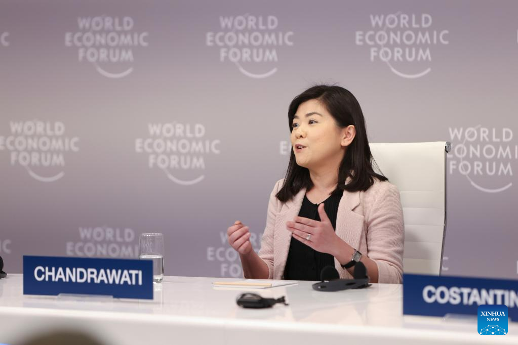 Rona Chandrawati, scientia associate professor and National Health and Medical Research Council (NHMRC) fellow at University of New South Wales, speaks during a session themed "Top 10 Emerging Technologies of 2023" for the 14th Annual Meeting of the New Champions, also known as the Summer Davos, in Tianjin, north China, June 27, 2023. (Xinhua/Meng Chenguang)
