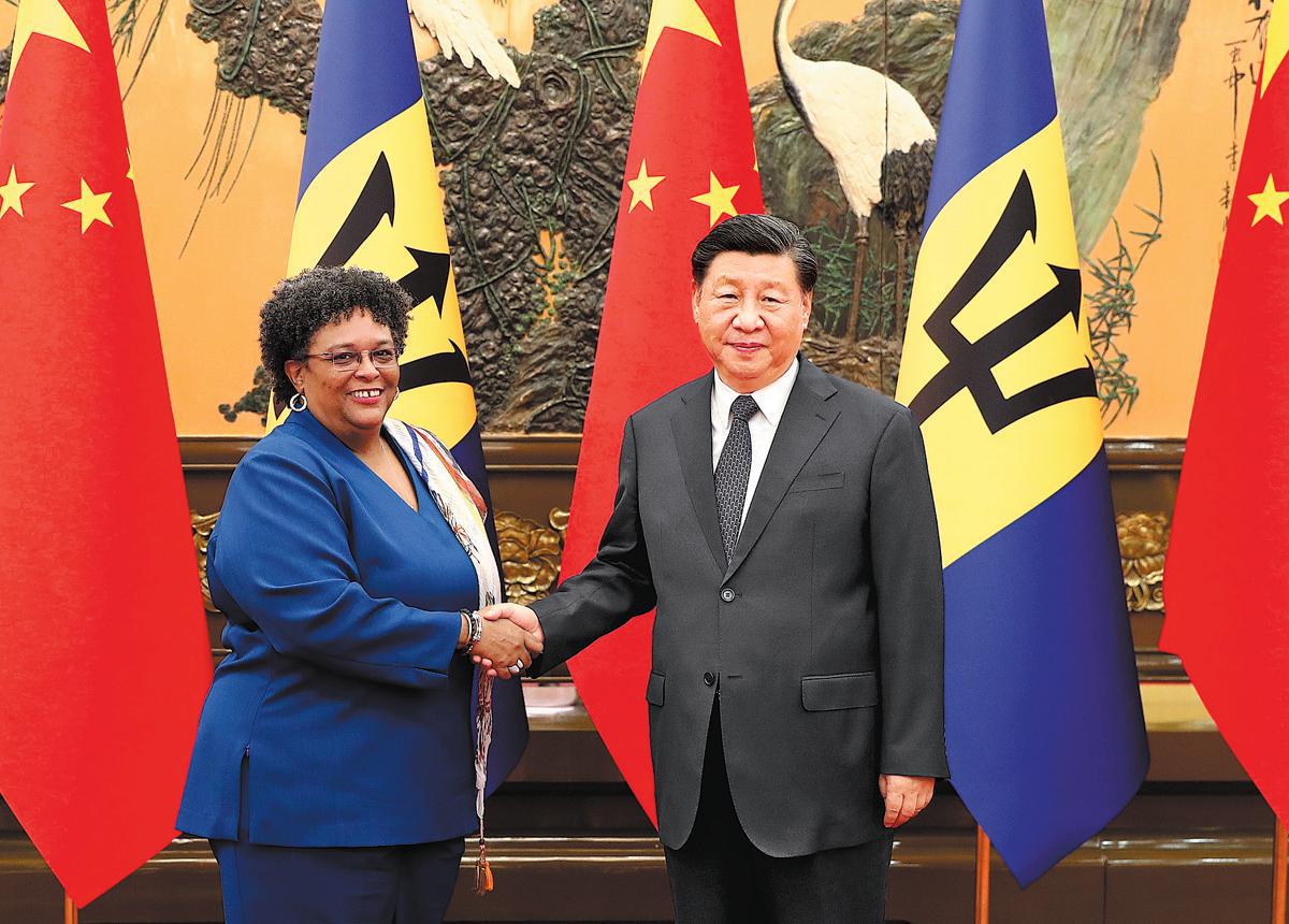 It is important for Beijing and Barbados, as two developing nations, to expand pragmatic cooperation and take advantage of the opportunities presented by the joint building of the Belt and Road, in order to advance cooperation on infrastructure development, digital economy, climate change, renewable energy, agriculture and healthcare, Xi said.