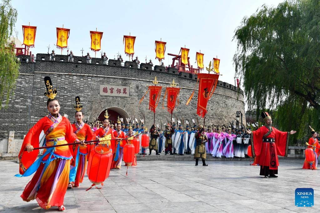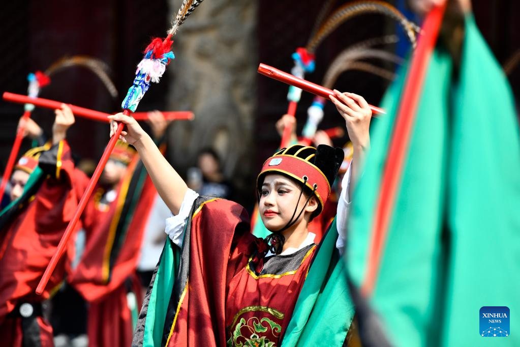 Performers are seen at the Confucius Temple in Qufu, east China's Shandong Province, June 27, 2023. A series of activities to promote traditional Chinese culture were held at the Confucius Temple in Qufu during the World Internet Conference Nishan Dialogue on Digital Civilization on Tuesday. (Xinhua/Guo Xulei)