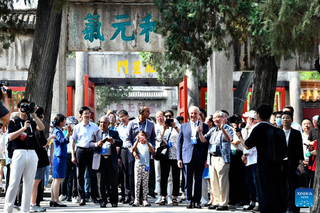Chinese and foreign guests and tourists visit the Confucius Temple in Qufu, east China's Shandong Province, June 27, 2023. A series of activities to promote traditional Chinese culture were held at the Confucius Temple in Qufu during the World Internet Conference Nishan Dialogue on Digital Civilization on Tuesday. (Xinhua/Guo Xulei)