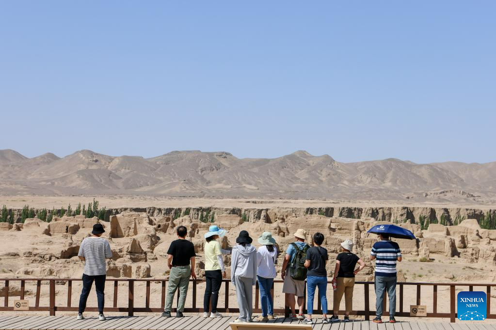 Tourists visit the Jiaohe Ruins, a world cultural heritage site, in Turpan, northwest China's Xinjiang Uygur Autonomous Region, June 25, 2023.