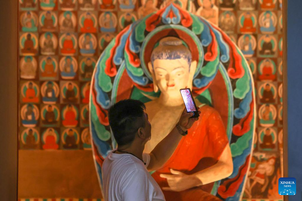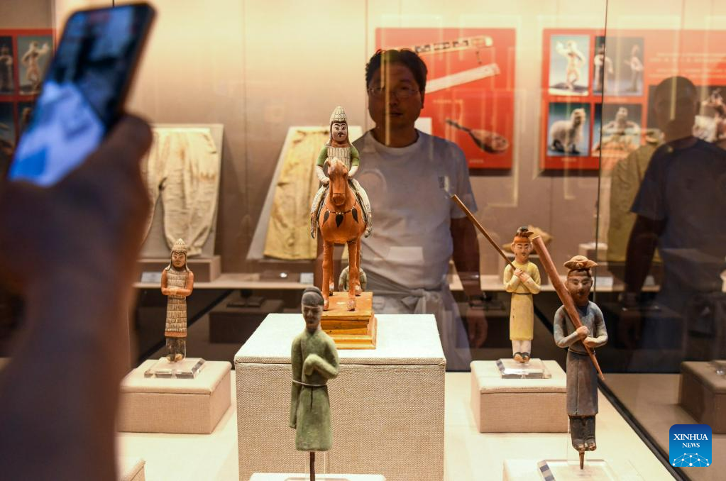 A visitor takes photos at the Turpan Museum in Turpan, northwest China's Xinjiang Uygur Autonomous Region, June 25, 2023.
