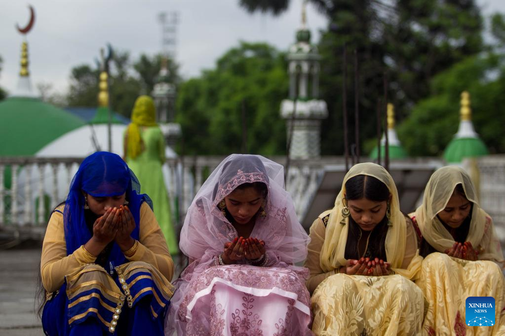 People pray during the Muslim festival of Eid al-Adha, or the Feast of Sacrifice, in Kathmandu, Nepal, June 29, 2023. (Photo by Sulav Shrestha/Xinhua)