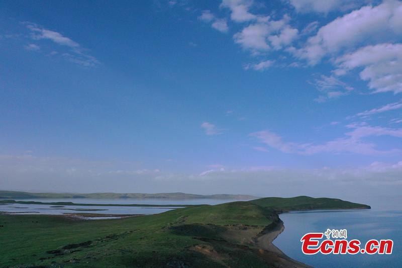 Magnificent scenery of blue colors of the Erling Lake and the sky merging on the horizon at Maduo County of Guoluo Tibetan Autonomous Prefecture, northwest China's Qinghai Province, June 28, 2023. (Photo: China News Service/Ma Mingyan)