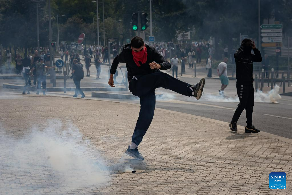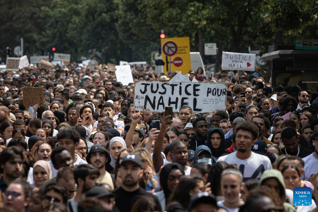 PARIS, June 29 (Xinhua) -- French security forces on Thursday deployed tear gas as they clashed with protesters during a rally triggered by the fatal shooting of Nahel M, a 17-year-old teenager, by a police officer during a traffic stop on Tuesday.
