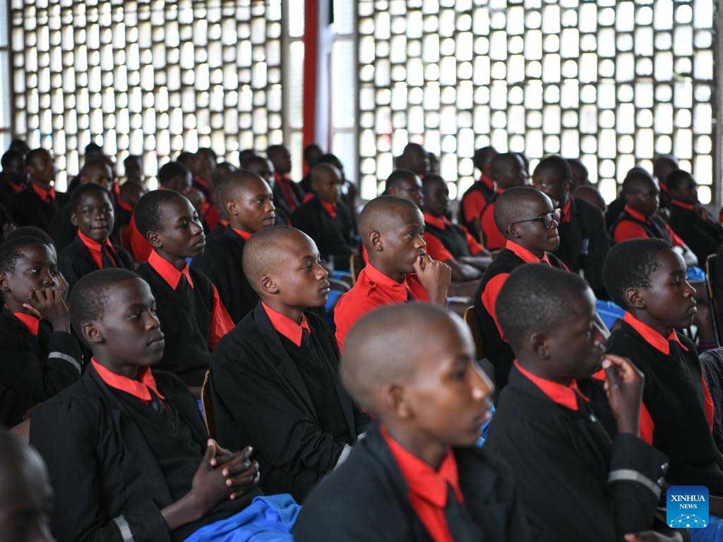 Students attend an unveiling ceremony for the Confucius Classroom at Starehe Boys' Center and School in Nairobi, Kenya, on June 30, 2023. A Confucius Classroom was launched on Friday at Starehe Boys' Center and School in downtown Nairobi to facilitate the teaching of Chinese language to teenage learners. (Xinhua/Han Xu)