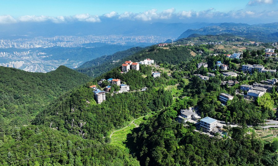 This aerial photo shows the scenery of Kuliang in Jin'an District of Fuzhou, southeast China's Fujian Province, June 28, 2023. (Xinhua/Wei Peiquan)