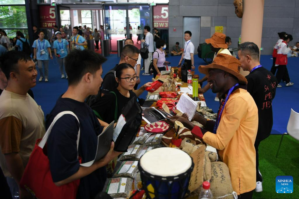 Visitors (L) shop various products at the Changsha International Convention and Exhibition Center during the third China-Africa Economic and Trade Expo in Changsha, central China's Hunan Province, July 1, 2023. The third China-Africa Economic and Trade Expo is held in Changsha from June 29 to July 2. (Xinhua/Chen Zhenhai)