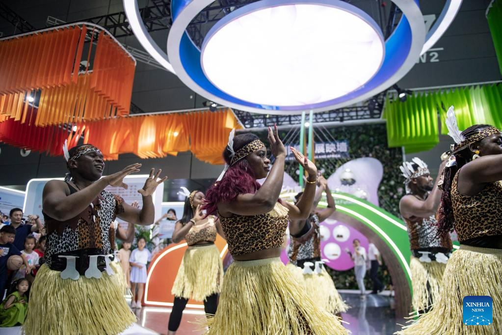 Actors perform African dance during the third China-Africa Economic and Trade Expo in Changsha, central China's Hunan Province, July 1, 2023. The third China-Africa Economic and Trade Expo is held in Changsha from June 29 to July 2. (Xinhua/Sun Ruibo)