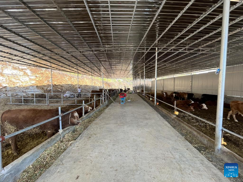 This photo taken on Nov. 26, 2022 shows Gao Zhilin's cattle farm in Wolong Village of Xinpu Township, Guanling County, southwest China's Guizhou Province. (Xinhua/Li Jingya)