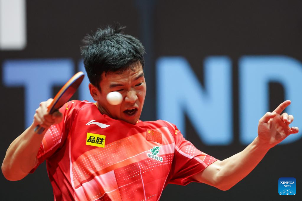 Lin Shidong of China competes during men's singles semifinal match against his teammate Fan Zhendong at the 2023 World Table Tennis (WTT) Contender Zagreb in Zagreb, Croatia, on July 1, 2023. (Photo by Luka Stanzl/PIXSELL via Xinhua)
