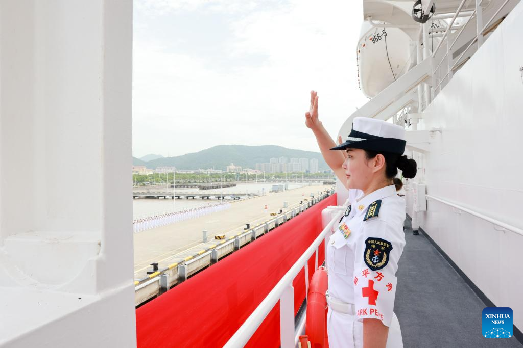 Chinese naval hospital ship "Peace Ark" sets sail at a port in Zhoushan, east China's Zhejiang Province, July 3, 2023. (Photo by Han Lin/Xinhua)