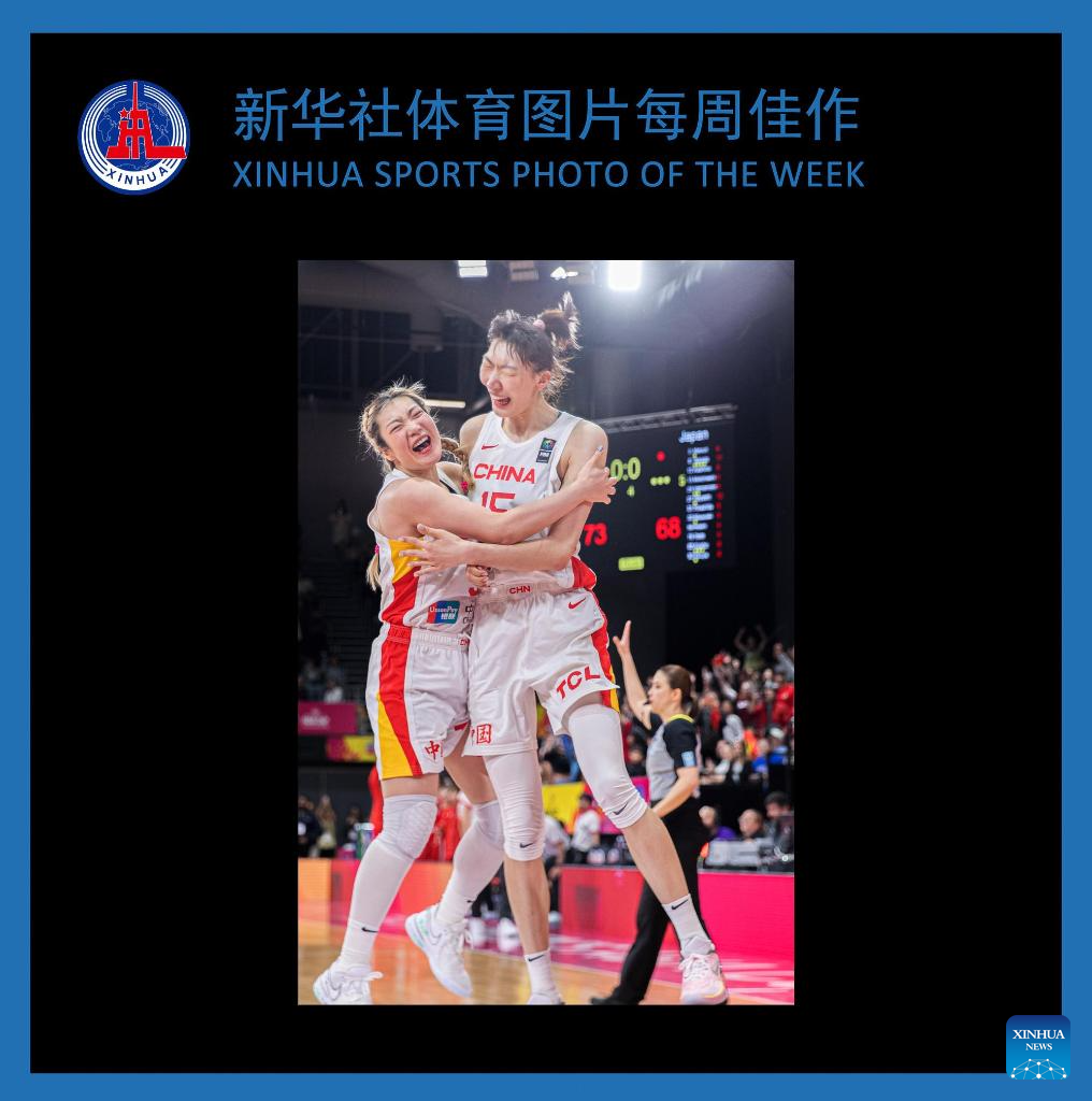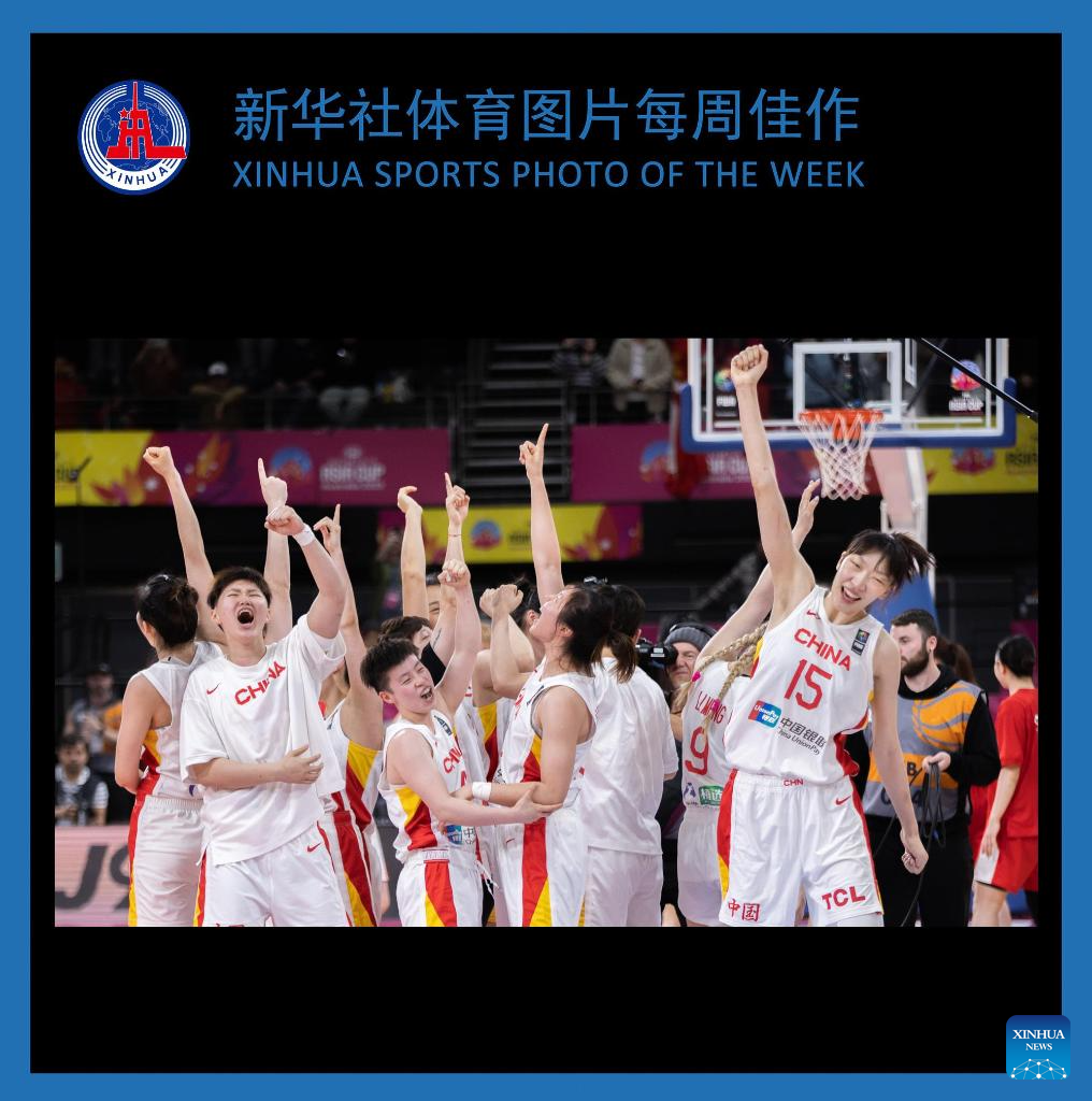 Players of China celebrate after winning the final against Japan at the 2023 FIBA Women's Asia Cup in Sydney, Australia, July 2, 2023. (Photo by Hu Jingchen/Xinhua)