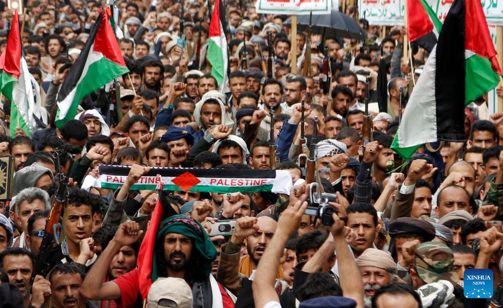 SANAA, July 4 (Xinhua) -- Thousands of people rallied in Yemen's rebel-held capital of Sanaa on Tuesday to protest against an Israeli raid on the Jenin refugee camp in the West Bank.