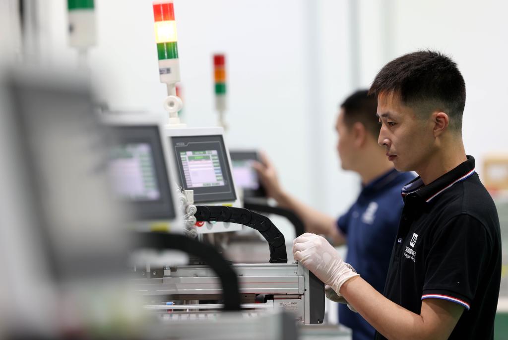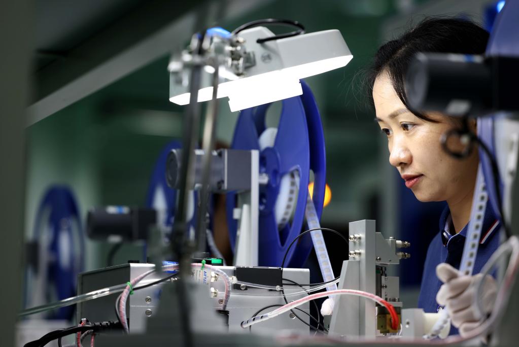 A staff member works at an electronic technology company in Yaohai District of Hefei City, east China's Anhui Province, June 25, 2023. In recent years, Yaohai District has been committed to promoting the high-quality development of small and medium-sized technology-based enterprises, adding impetus to regional economic development. (Photo by Xie Chen/Xinhua)