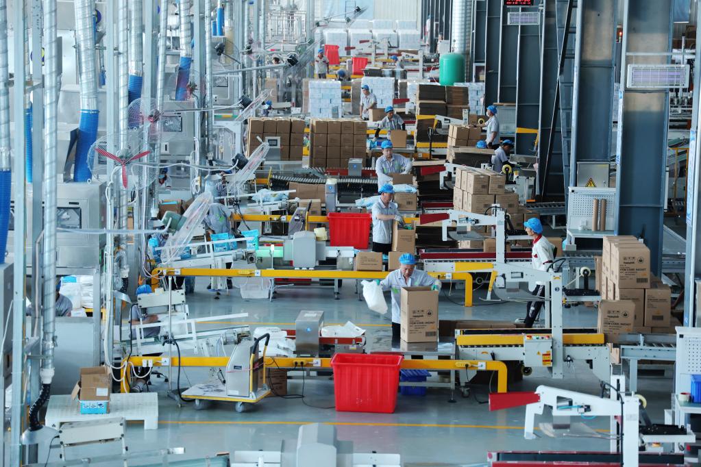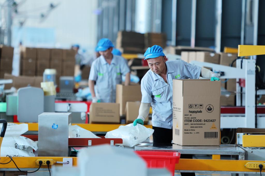 Workers pack cat litters at a company in Tengzhou City, east China's Shandong Province, June 30, 2023.?(Xinhua/Fan Changguo)