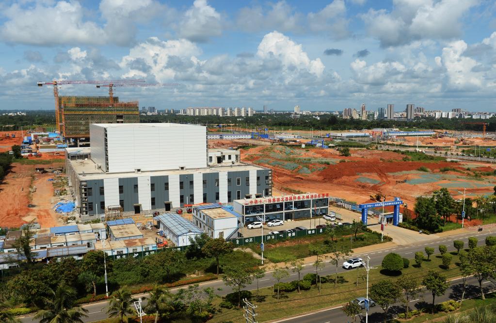 This photo taken on June 26, 2023 shows a construction site of the Wenchang International Aerospace City in Wenchang City, south China's Hainan Province. Focusing on the development of aerospace science and technology, the Wenchang International Aerospace City, one of the key industrial parks of Hainan free trade port, is undergoing construction in an orderly manner. (Xinhua/Liu Yongzhen)