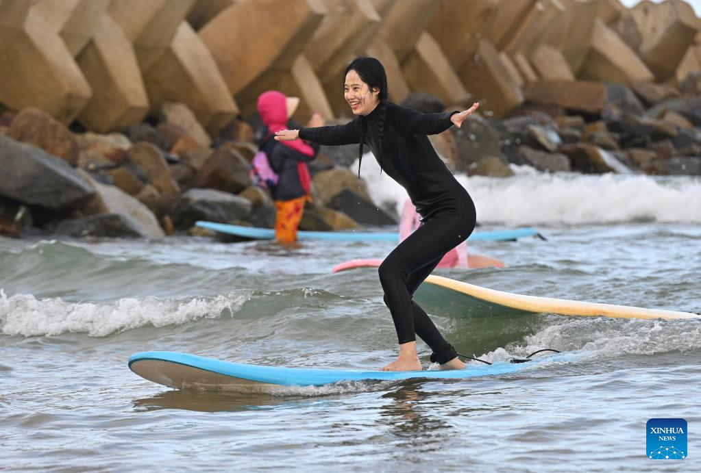 Li Jing, a surfing enthusiast from northwest China's Xinjiang Uygur Autonomous Region, recently planned a series of activities with the International Surfing Day as the theme with some surfing clubs at the bay, attracting nearly 10,000 surfers from home and abroad.