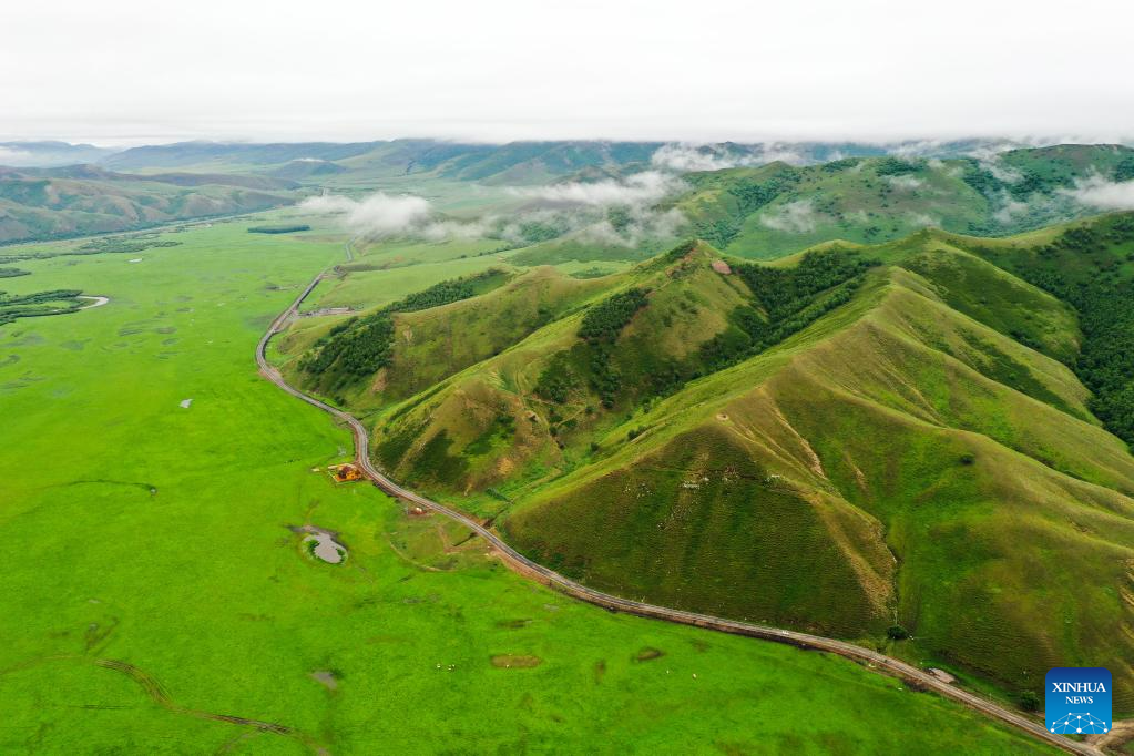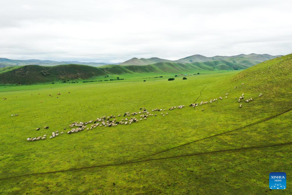 This aerial photo taken on July 5, 2023 shows the summer scenery of the Ulan Mod grassland in Horqin Right Wing Front Banner of Hinggan League, north China's Inner Mongolia Autonomous Region. (Xinhua/Bei He)