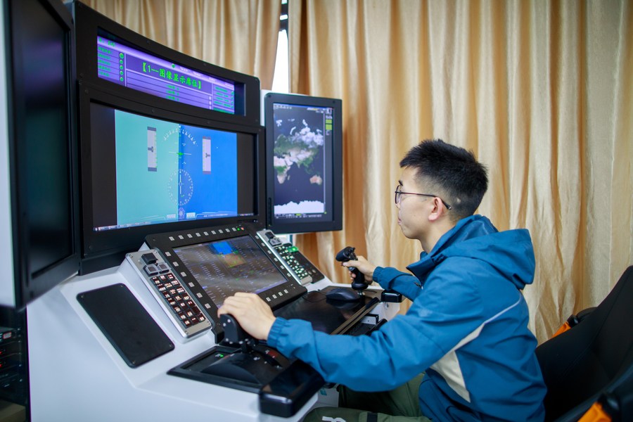 A staff member works on a simulation experiment of unmanned aerial vehicle (UAV) at the State Key Laboratory of Public Big Data at Guizhou University in Guiyang, southwest China's Guizhou Province, May 23, 2023. (Xinhua/Liu Xu)