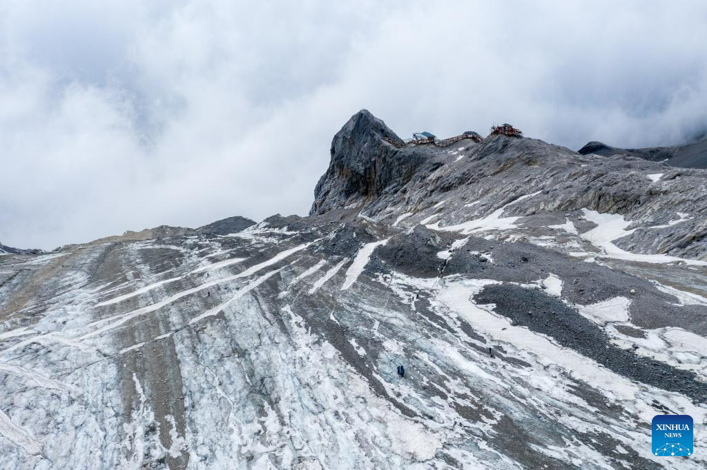 This photo taken on June 19, 2023 shows a view of the Baishui River No. 1 Glacier on the Yulong Snow Mountain in Lijiang City, southwest China's Yunnan Province. (Xinhua/Tian Weiwei)