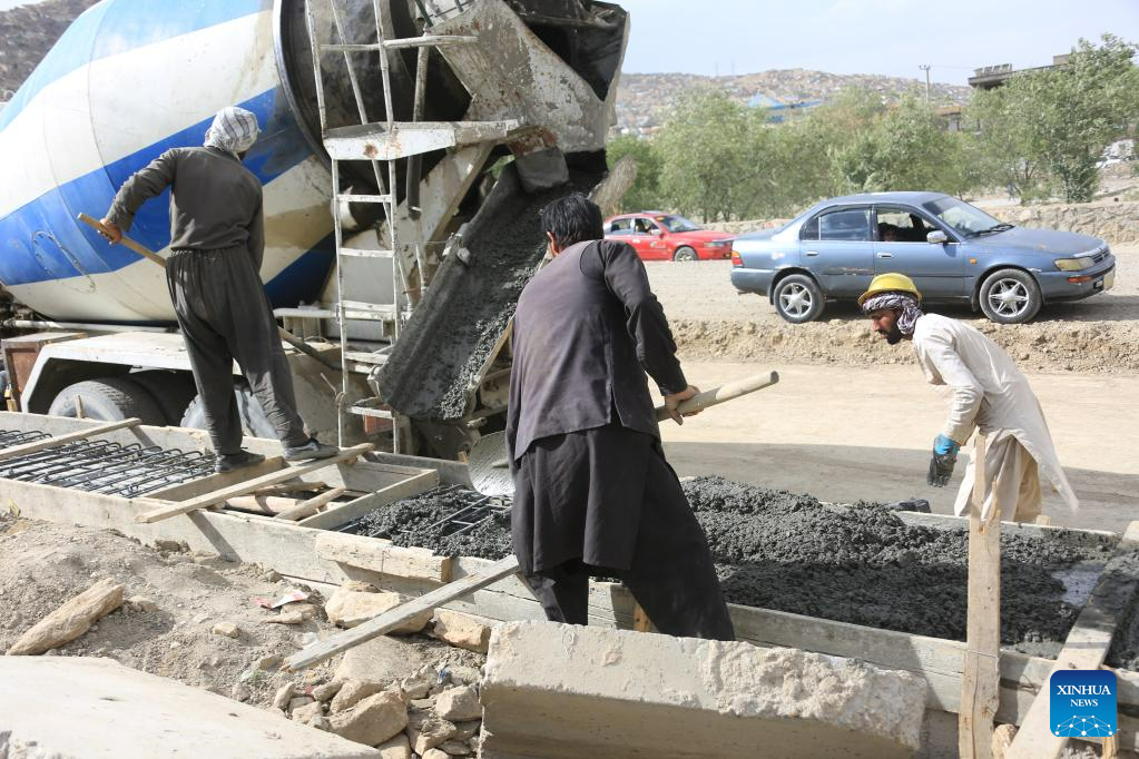 People work at the construction site of a road in Kabul, capital of Afghanistan, July 9, 2023. Afghan Acting Minister for Foreign Affairs Mawlawi Amir Khan Muttaqi has downplayed the reports on the economic crisis, saying the economy of Afghanistan has been moving on the right track, reported the state-run Bakhtar News Agency on Sunday. (Photo by Saifurahman Safi/Xinhua)