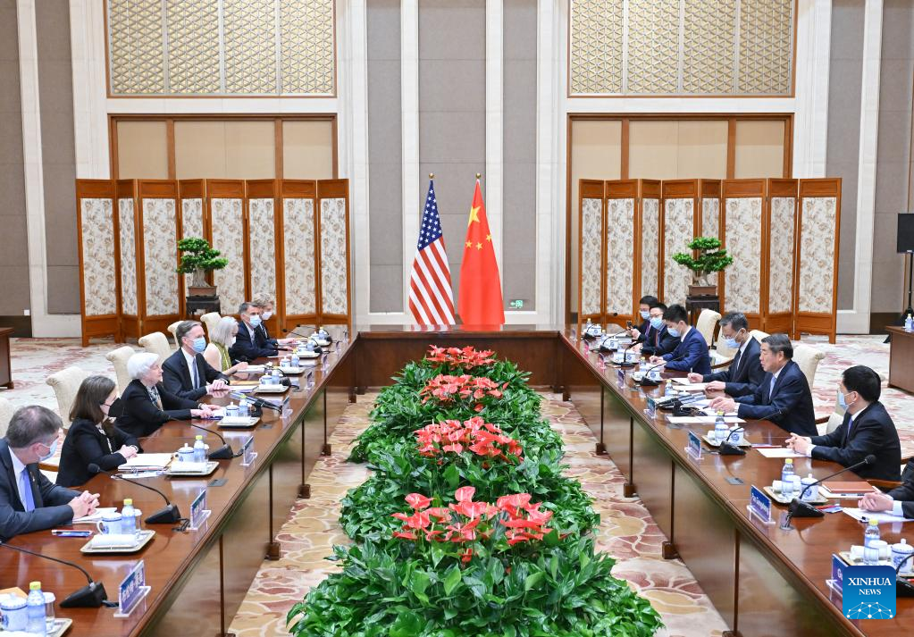 Chinese Vice Premier He Lifeng meets with U.S. Treasury Secretary Janet Yellen in Beijing, capital of China, July 8, 2023. (Xinhua/Yue Yuewei)