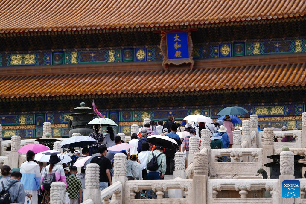 Tourists visit the Palace Museum, also known as the Forbidden City, in Beijing, capital of China, July 8, 2023. Beijng is seeing an increasing number of tourists as summer vacation starts across China. (Xinhua/Chen Yehua)