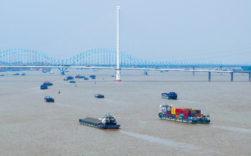 Cargo ships navigate on the Nanjing section of the Yangtze River, east China's Jiangsu province, July 4, 2023. (People's Daily Online/Fang Dongxu)